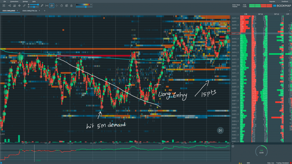 I mainly trade when price is at either Supply/Demand, Support/Resistance or at a level of interest based on the Order Flow. I look for buyer/sellers using OrderFlow tools like Bookmap to enter a trade. I have many playbooks which I’m planning to put it in a Video Series Soon but for now I’ll give few trade setups examples